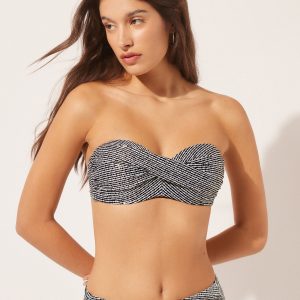 Bandeau Swimsuit Top Black Dots