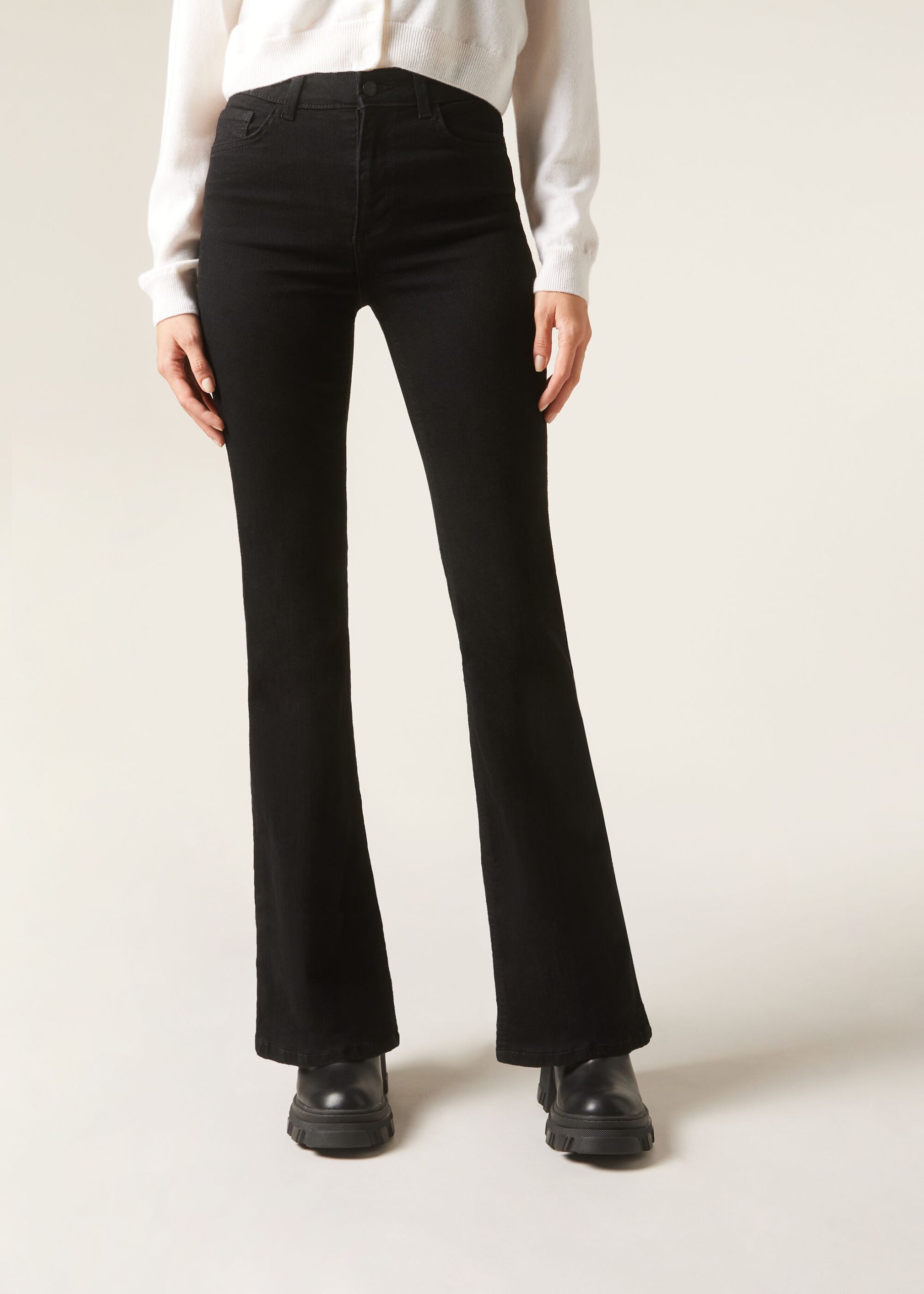 Women’s five pocket flared jeans with belt loops, zip and button closure, and rivets with the Clz logo. Made of ultra stretch denim fabric, these flared stretch jeans offer exceptional comfort and a perfect fit, ideal for those seeking style and comfort in a single piece.