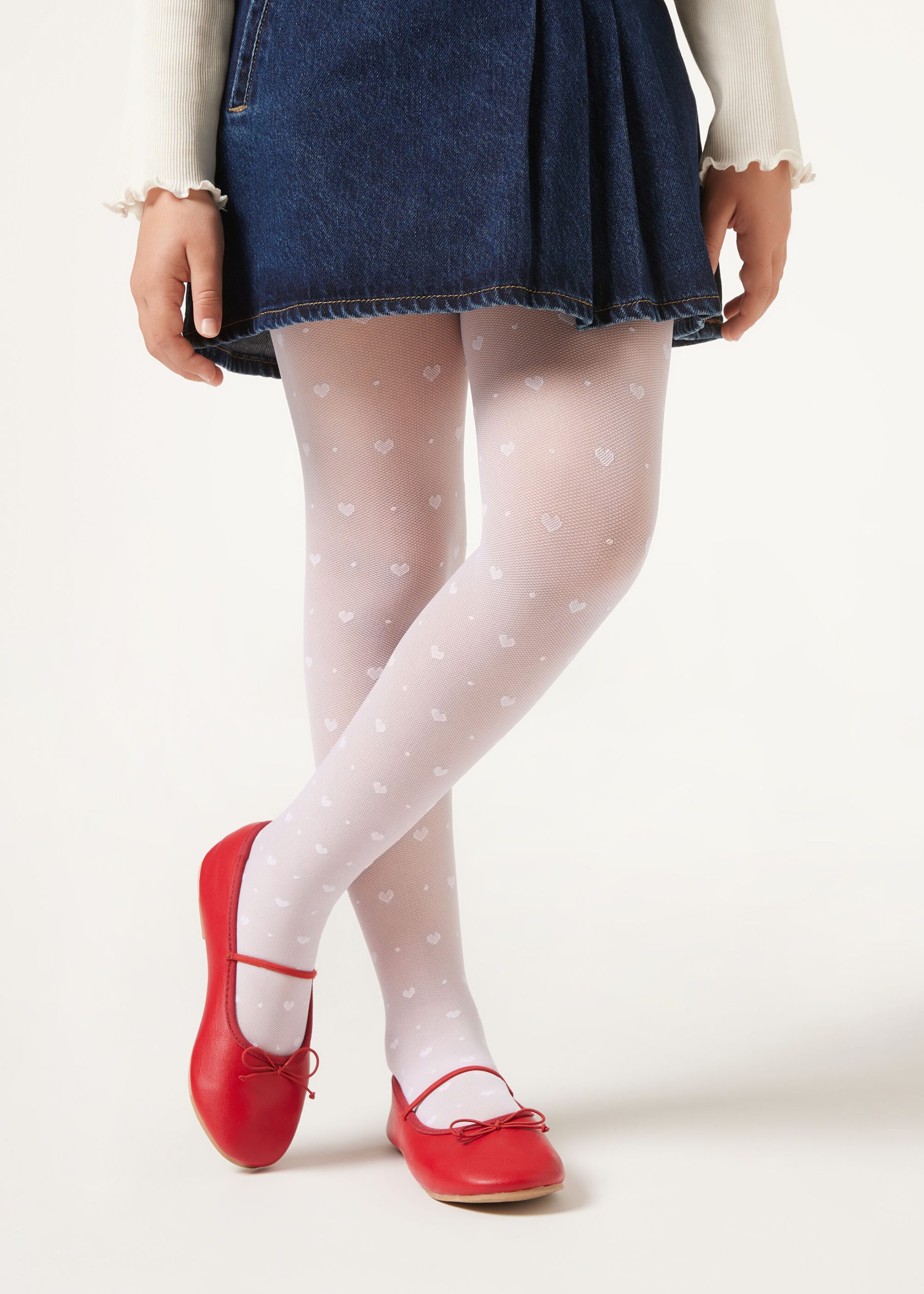 Girls’ 30 denier tulle tights featuring a fun and all over dot motif.