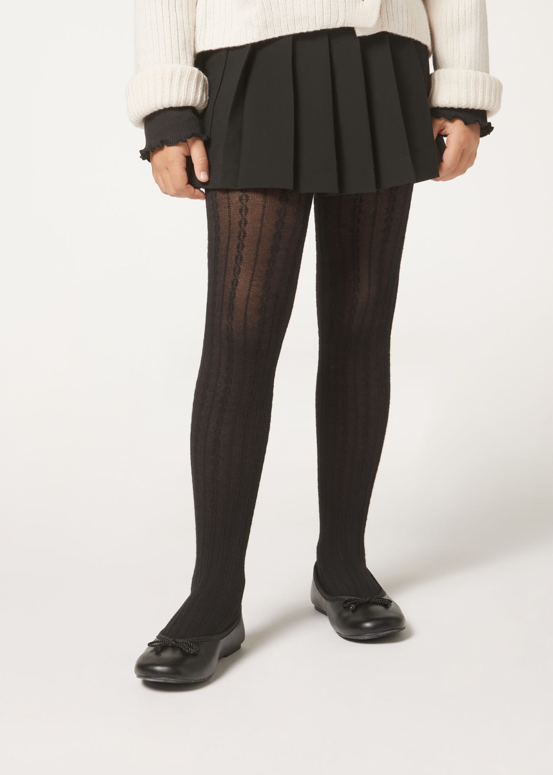 Girls Cable Knit Cashmere Tights