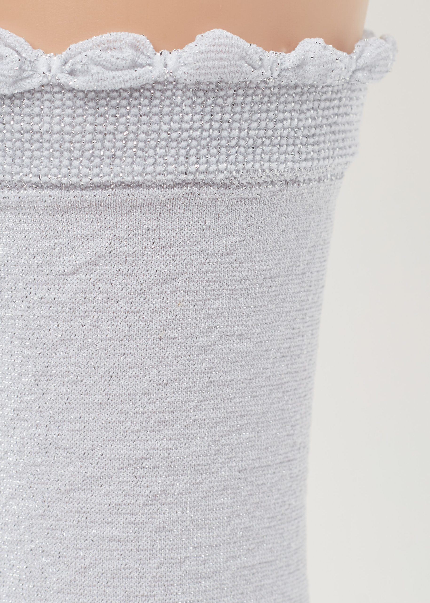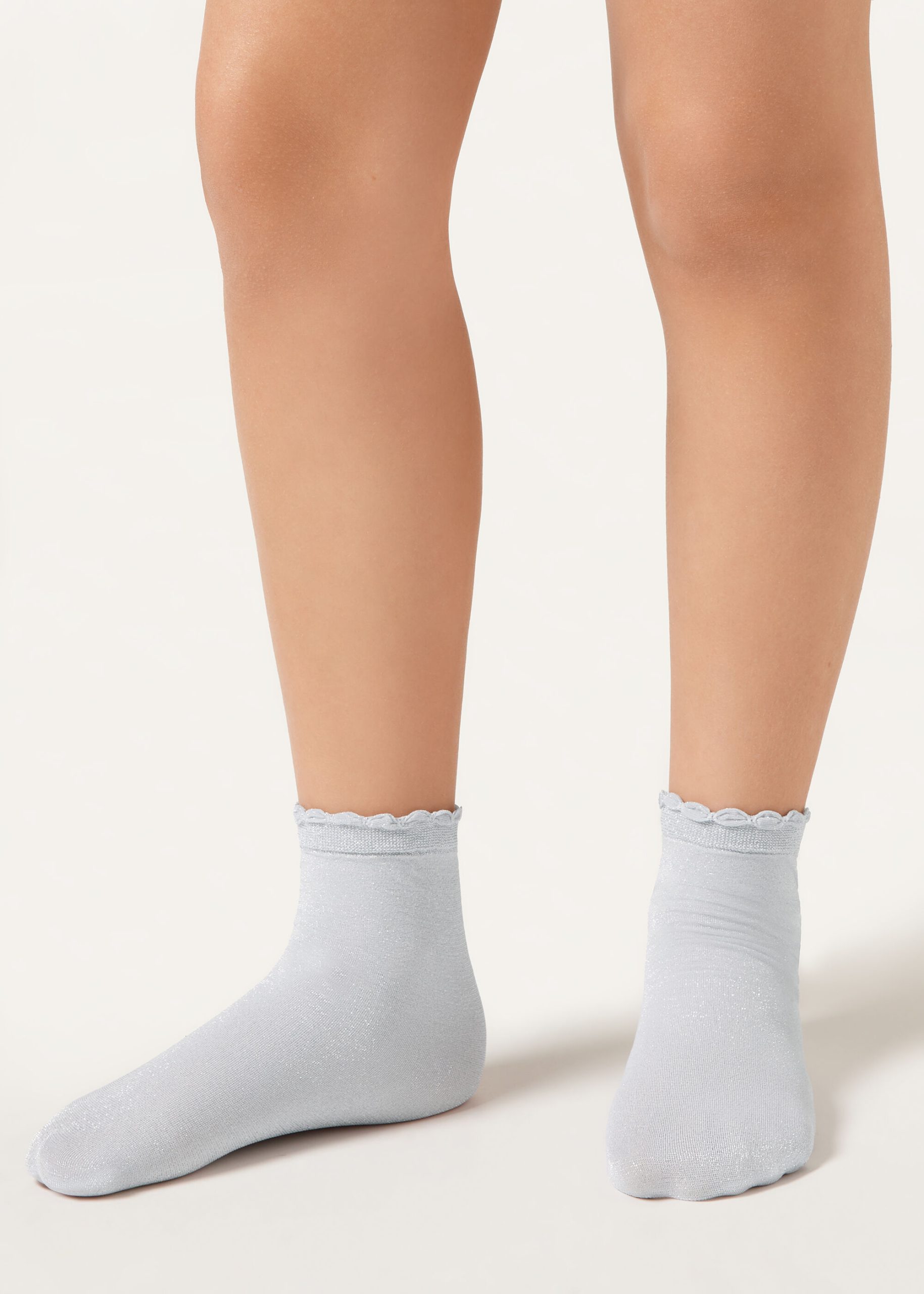 Girls’ 60 denier opaque short socks with glitter trim and scalloped edge.