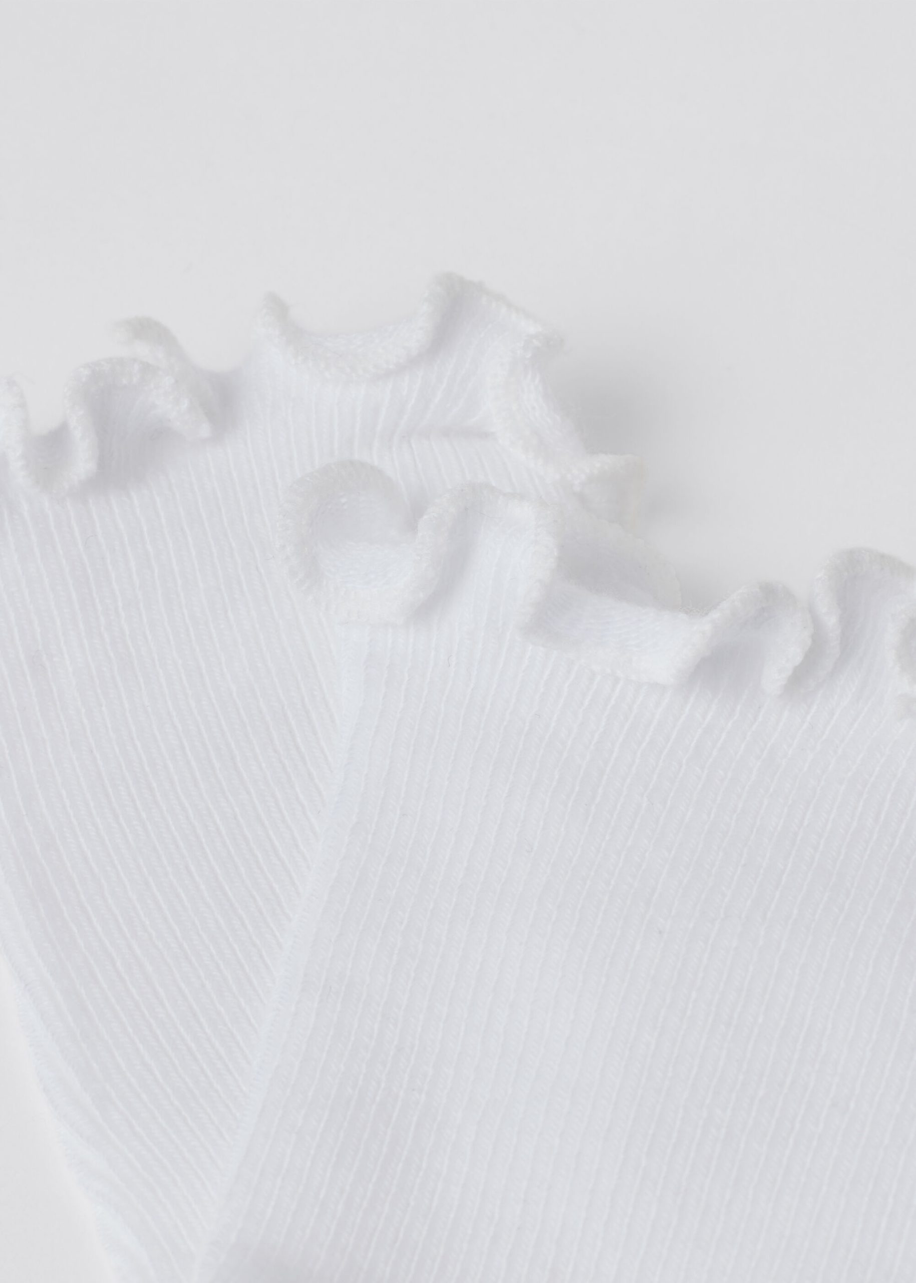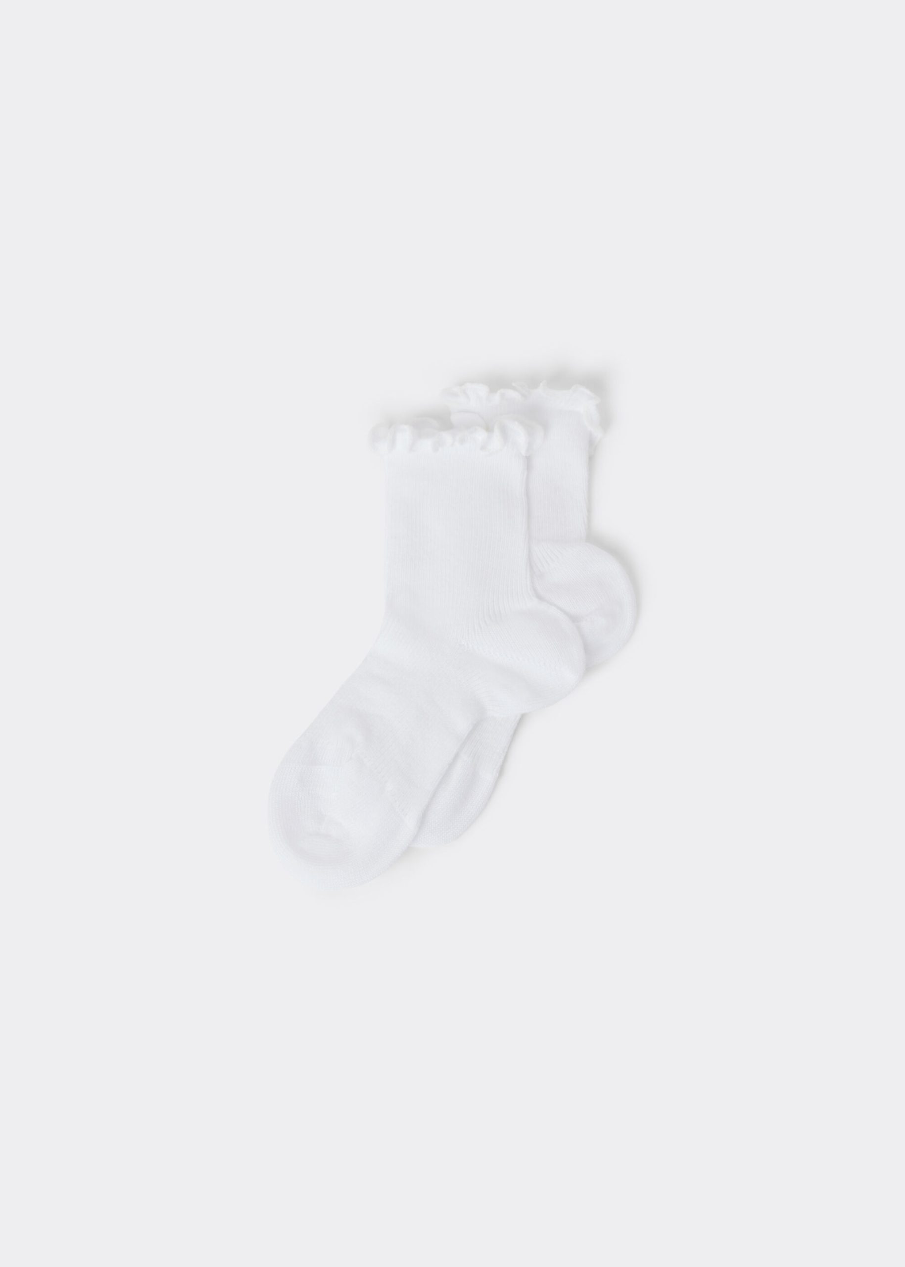 Girls’ short socks in soft cotton, featuring a ribbed construction and romantic scalloped border.