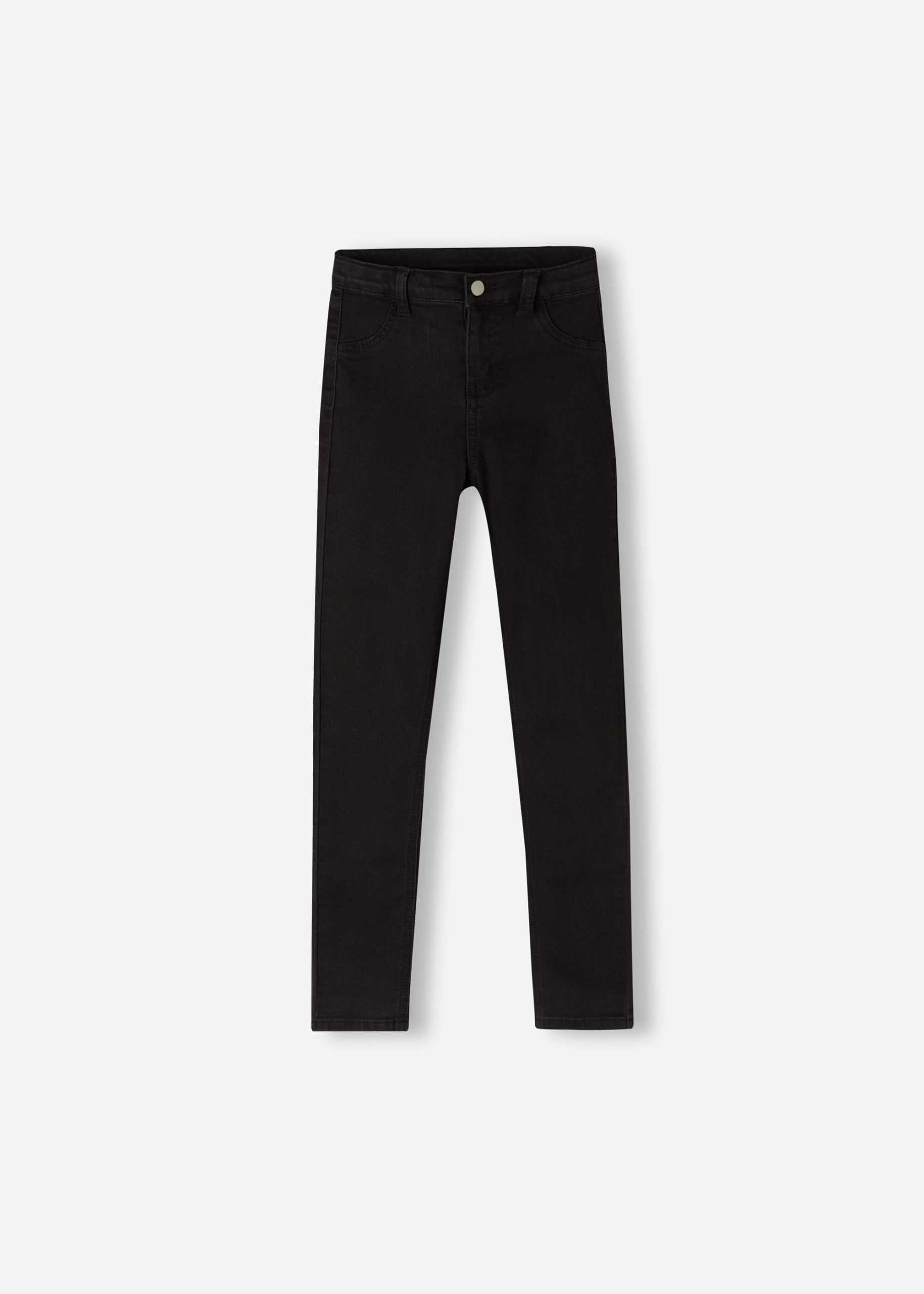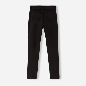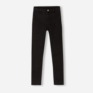 Girls’ skinny jeans in especially soft feel stretch denim with zip and button. Functional adjustable internal drawstring at waist. Faux front pockets and actual back pockets.