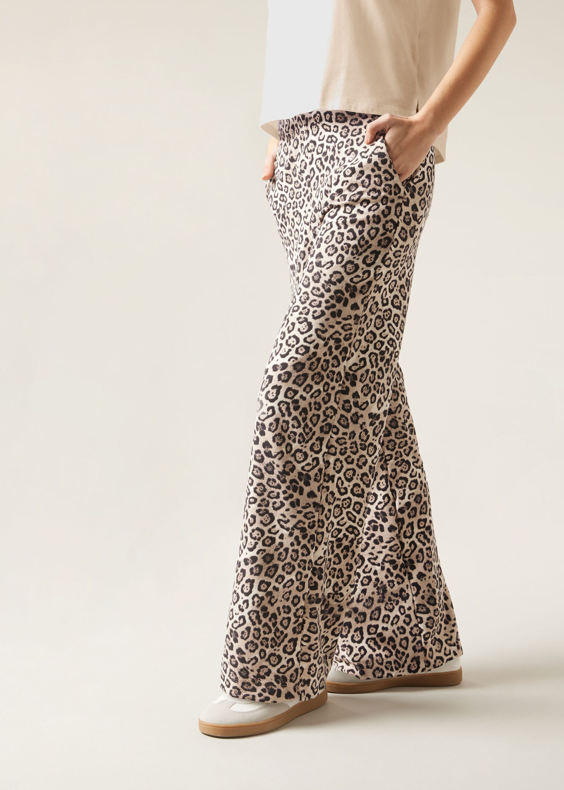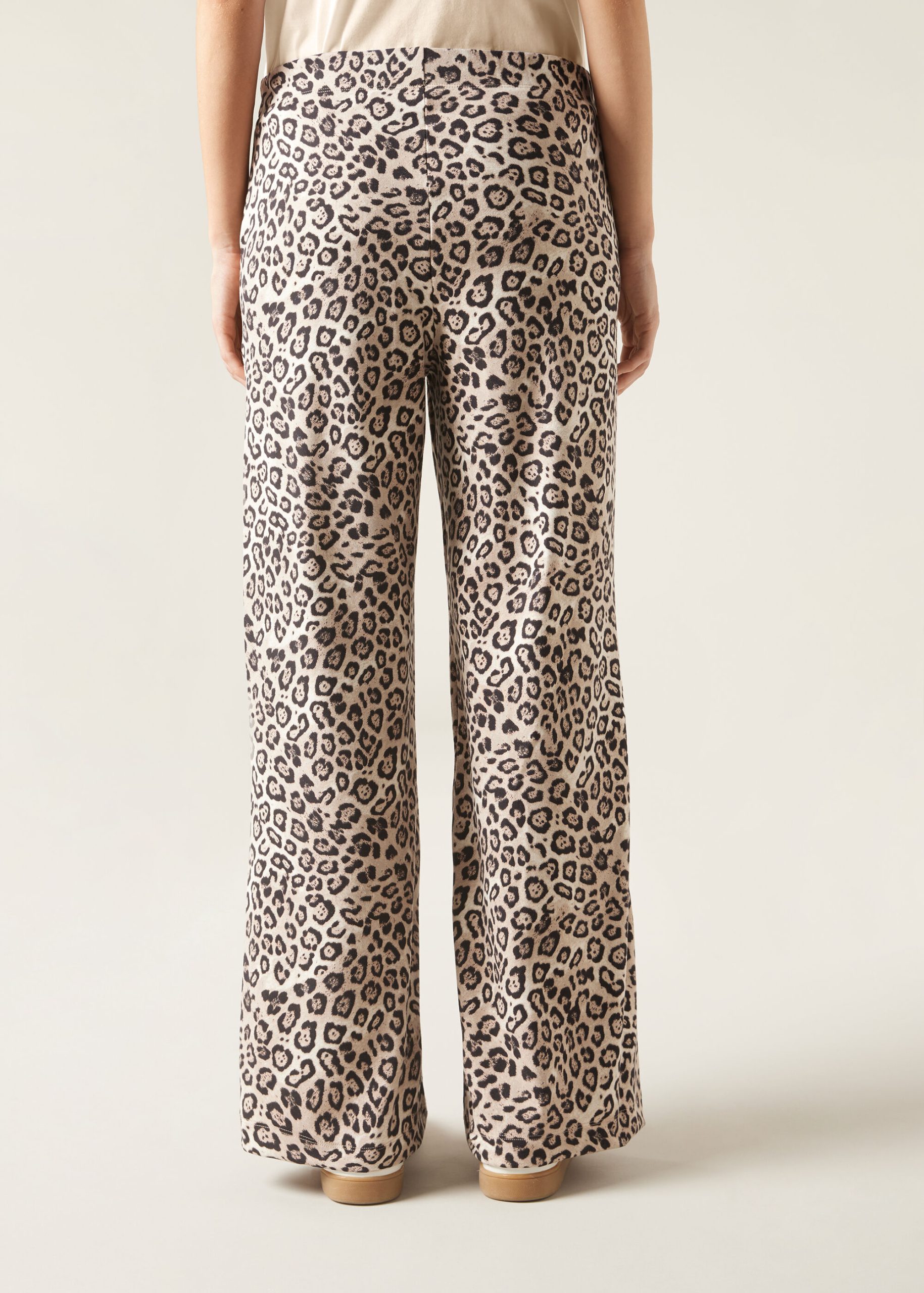 Palazzo pants in high quality soft touch modal blend fabric, supple and comfortable to the touch. Feature an elastic waistband and actual pockets, with an animal print that gives a touch of bold and modern style.