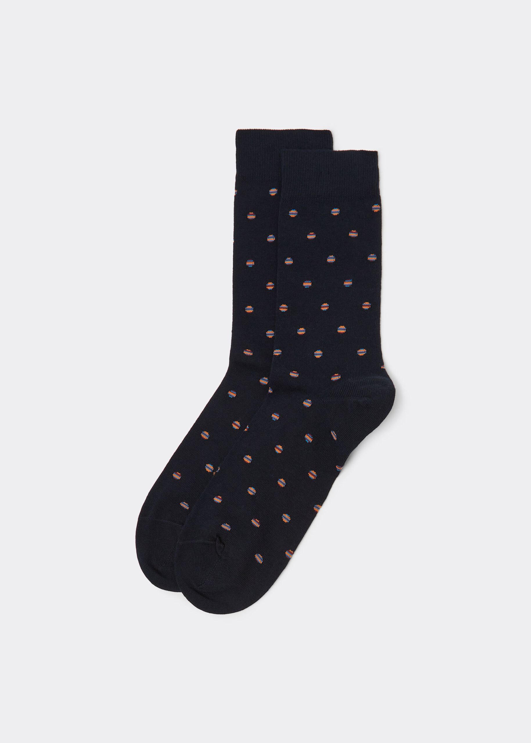 Men’s short cotton socks in a classic and distinctive pattern. This design offers comfort and timeless style, perfect to complete your day-to-day look with elegance and refined taste.
