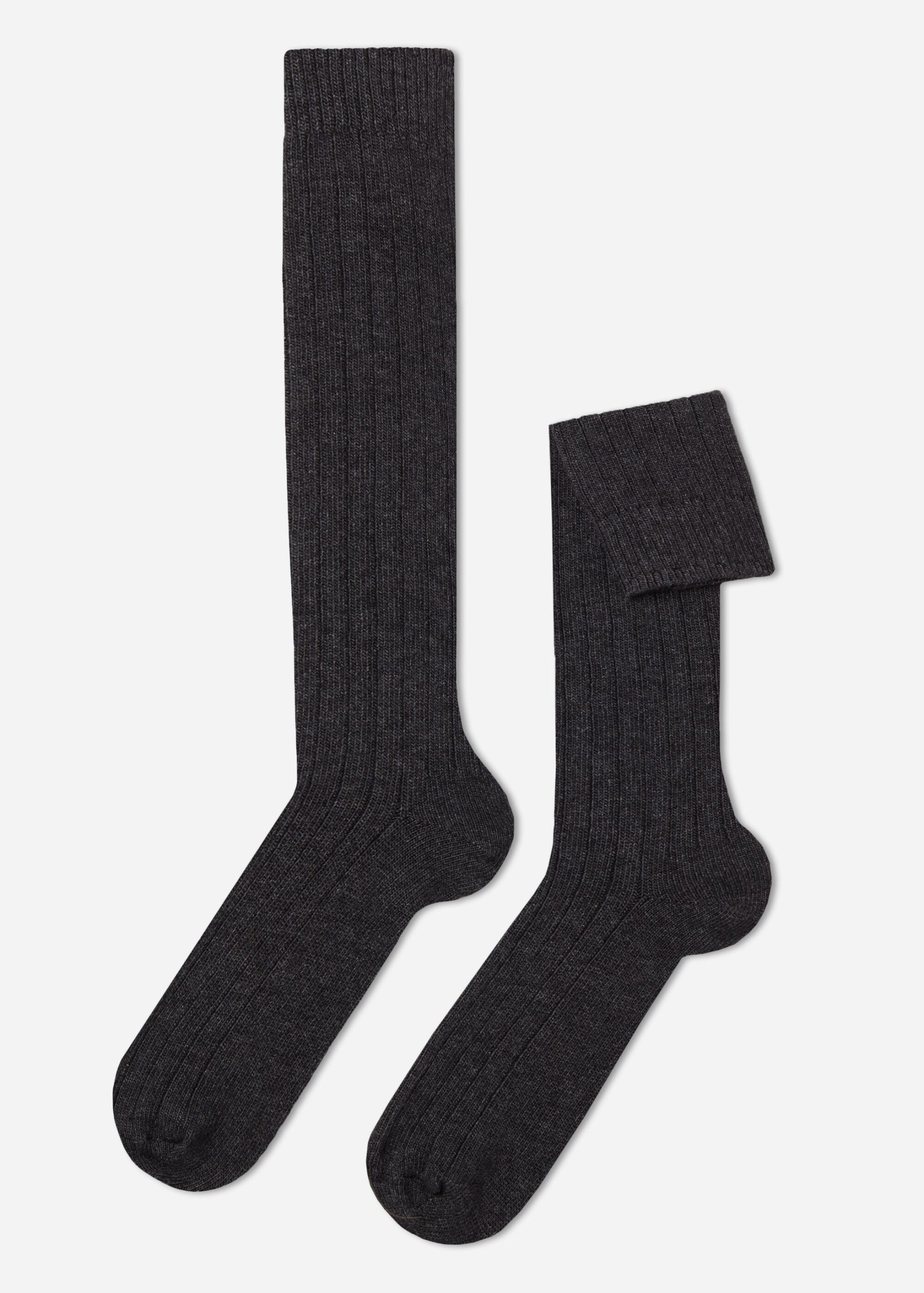 Men’s Ribbed Wool and Cashmere Long Socks