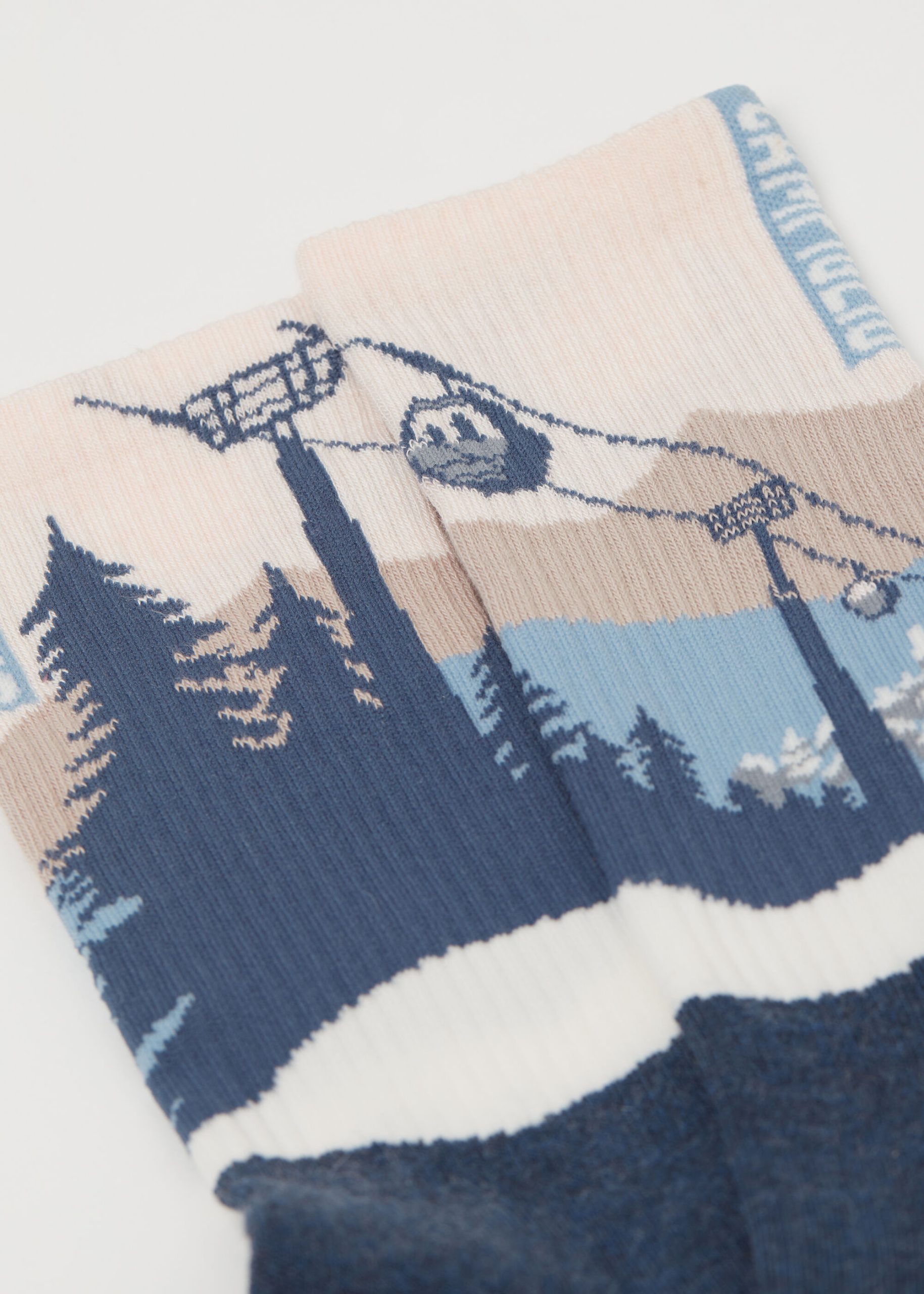 Women’s short socks with cashmere and a terry cotton sole, with a sporty look and pattern inspired by stunning mountain town scenery. Perfect for facing winter days in comfort and with a touch of elegance, they offer softness and warmth, ideal for those seeking a glamorous look and wanting to stand out during outdoor activities.