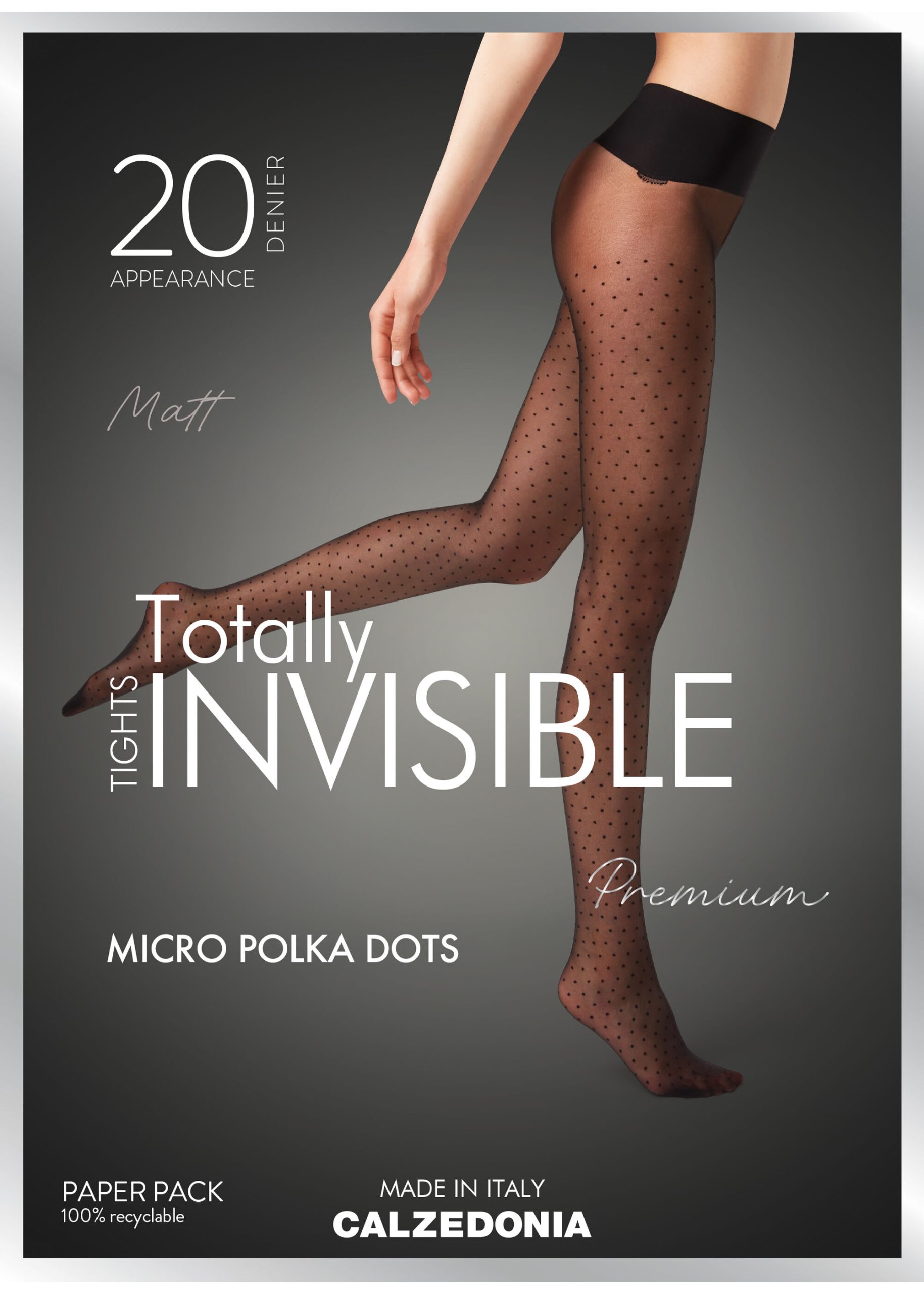 Extra-comfy 20 denier seamless sheer tights with a polka dot pattern. Totally invisible, even under tight clothes.