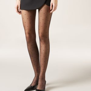 Women’s 20 denier tights with polka dot pattern.