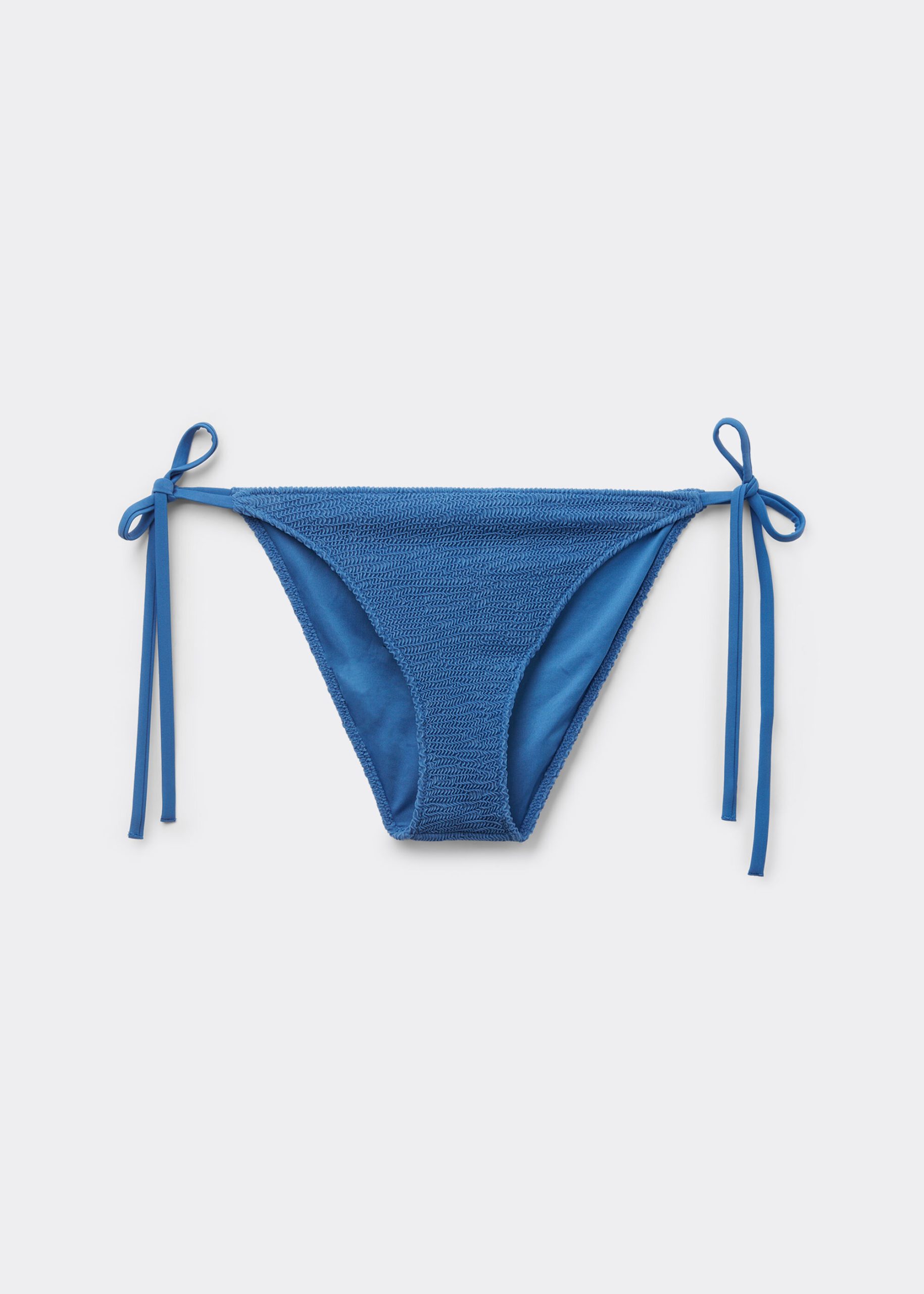 Bikini bottoms with adjustable fit thanks to the side ties. The slightly rounded waist at the front allows for both a regular and more high-cut fit, depending on one’s physique. The style features a crinkle fabric with a three-dimensional effect. Fully lined.