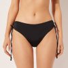 Bikini bottoms with adjustable fit thanks to the side ties. Made from refined shiny lamé fabric offering a bright and sophisticated effect. The slightly rounded waist at the front allows for wear with classic coverage or a higher leg, depending on your body shape. Fully lined.
