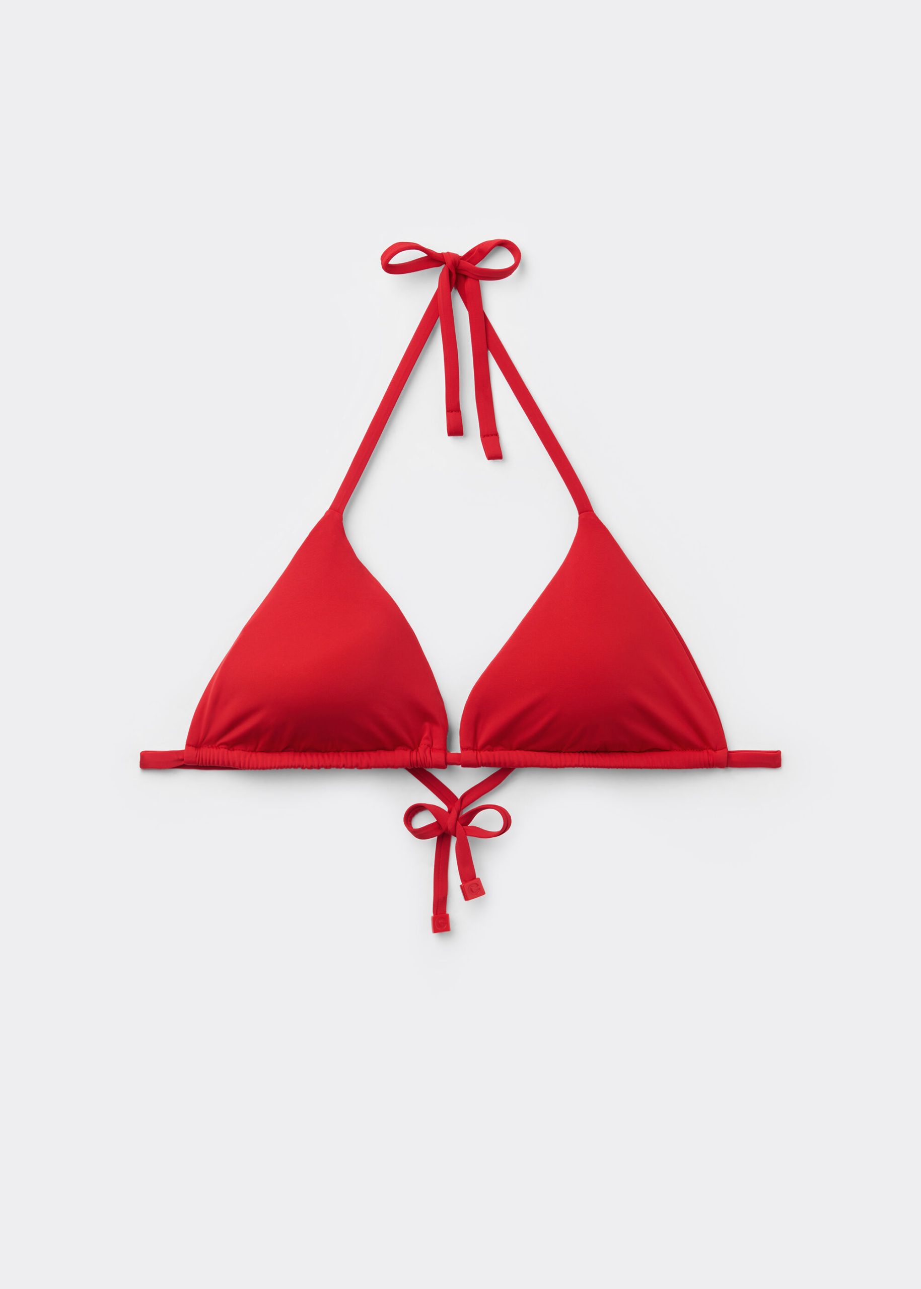 Slide triangle bikini top with removable padding, wireless for a natural effect. The extremely soft fabric makes it pleasant to wear, offering a light and comfortable feel on the skin. The shoulder straps have eyelets on the ends so they can be hooked onto the back band or tied behind the neck. Back string tie closure.